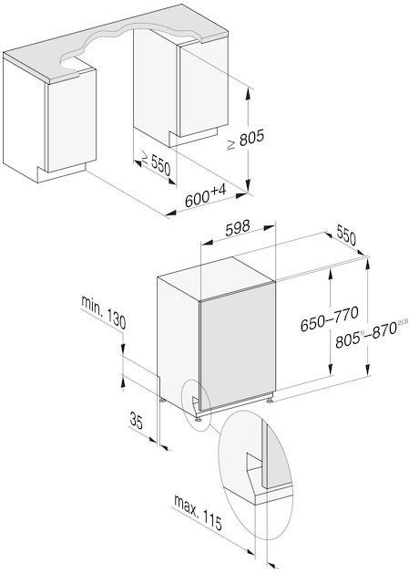 - Meer flexibiliteit en ruimte voor serviesgoed − inhoogte verstelbaar bovenrek