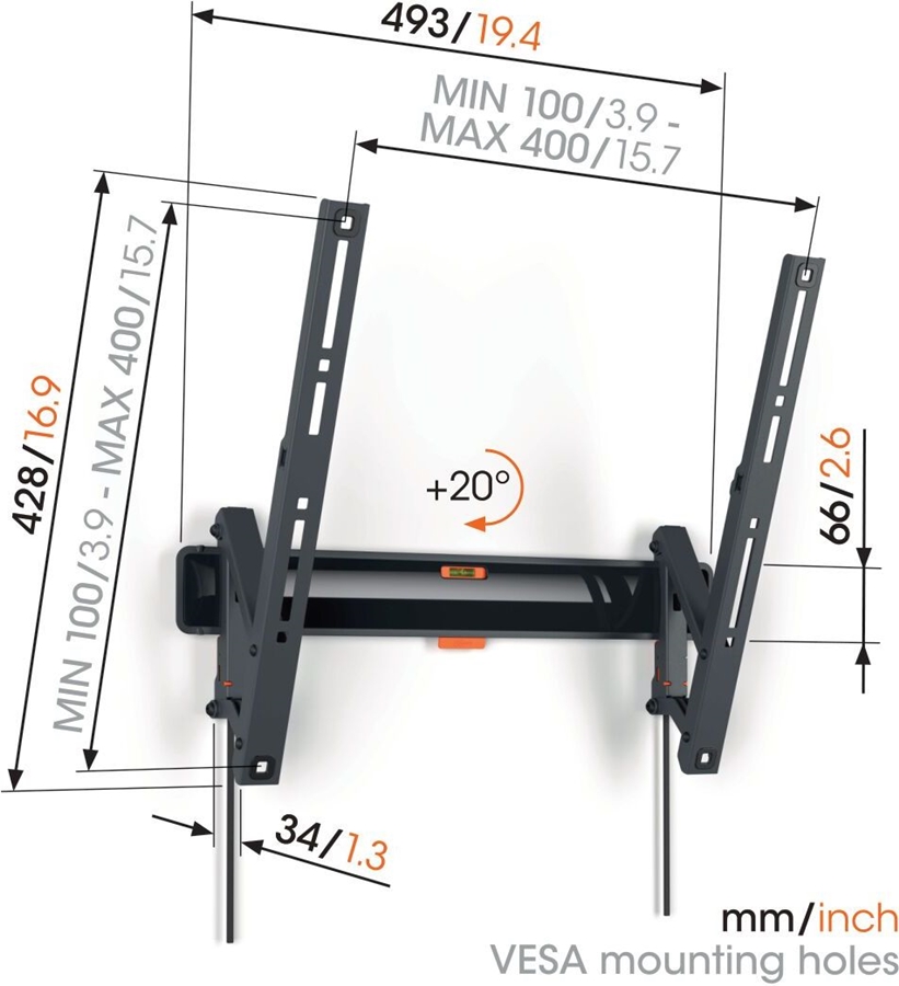 De COMFORT Tilt tv beugel is ideaal als je je tv wat hoger aan de muur wilt bevestigen, zoals bijvoorbeeld in je slaapkamer. Je tv hangt veilig en stijlvol. En je kunt het scherm tot 20° kantelen om een comfortabele kijkhoek te creëren. De tv beugel is geschikt voor tv’s van 32 t/m 65 inch met een gewicht van maximaal 25 kg.